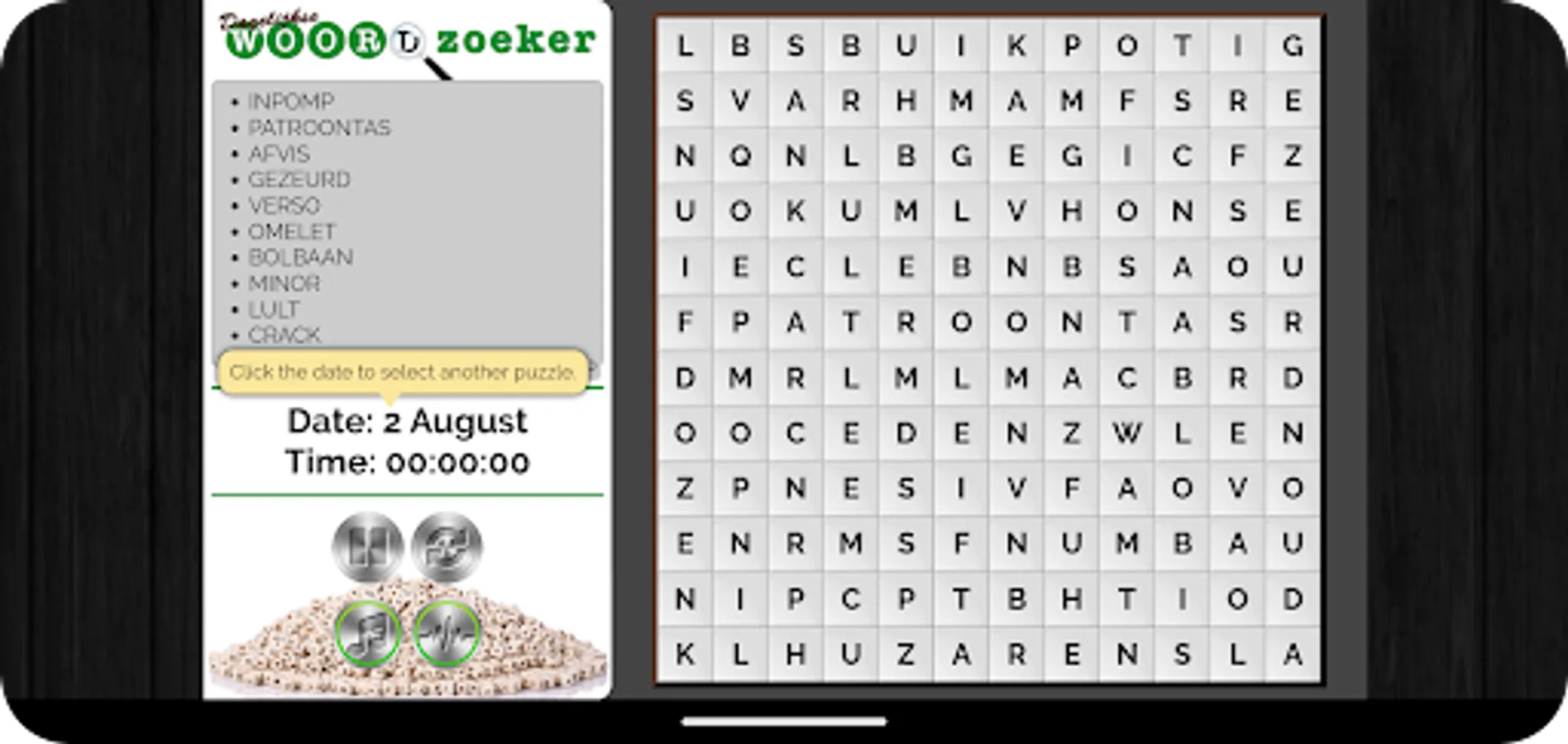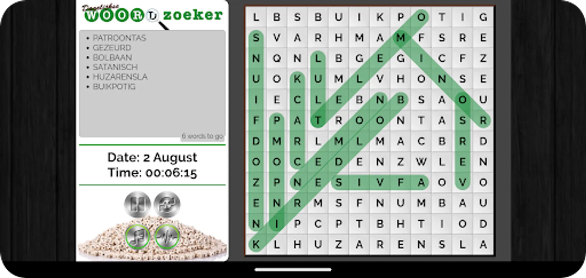 In Dagelijkse Woordzoeker, players will see a small grid of letters, usually 5x5 or 6x6. The game may or may not be time-limited, depending on how it is played. The player's goal is to find and mark all the words hidden in the letter grid within the time allotted or before the end of the game.