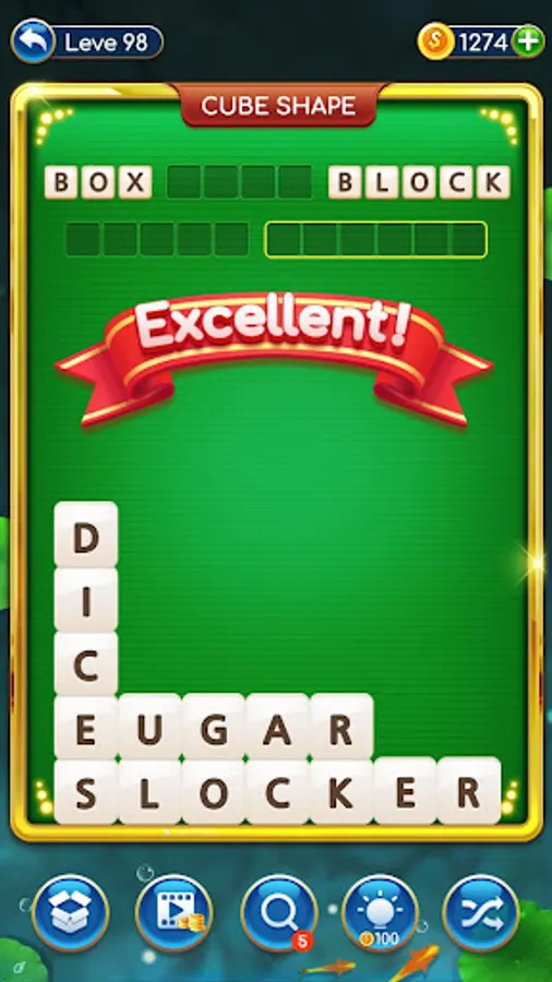 - Swipe letters horizontally or vertically to find and collect words