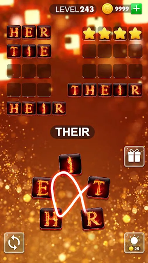 Simply swipe letters to form words, easy to grasp and fun to play. You can shuffle the letters to change their orders. More words you find, more coins you will get which you can use in later levels to get hints when you’re stuck.