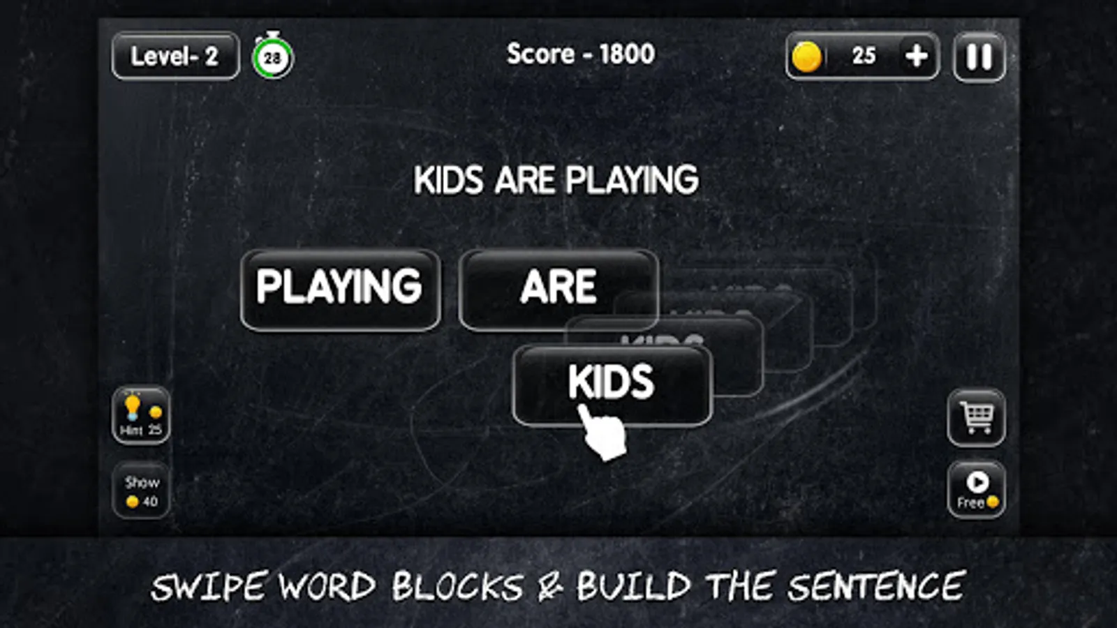 In the sentence mode of this scramble words game, the words are jumbled and it needs to be arranged to form a sentence within a given time.