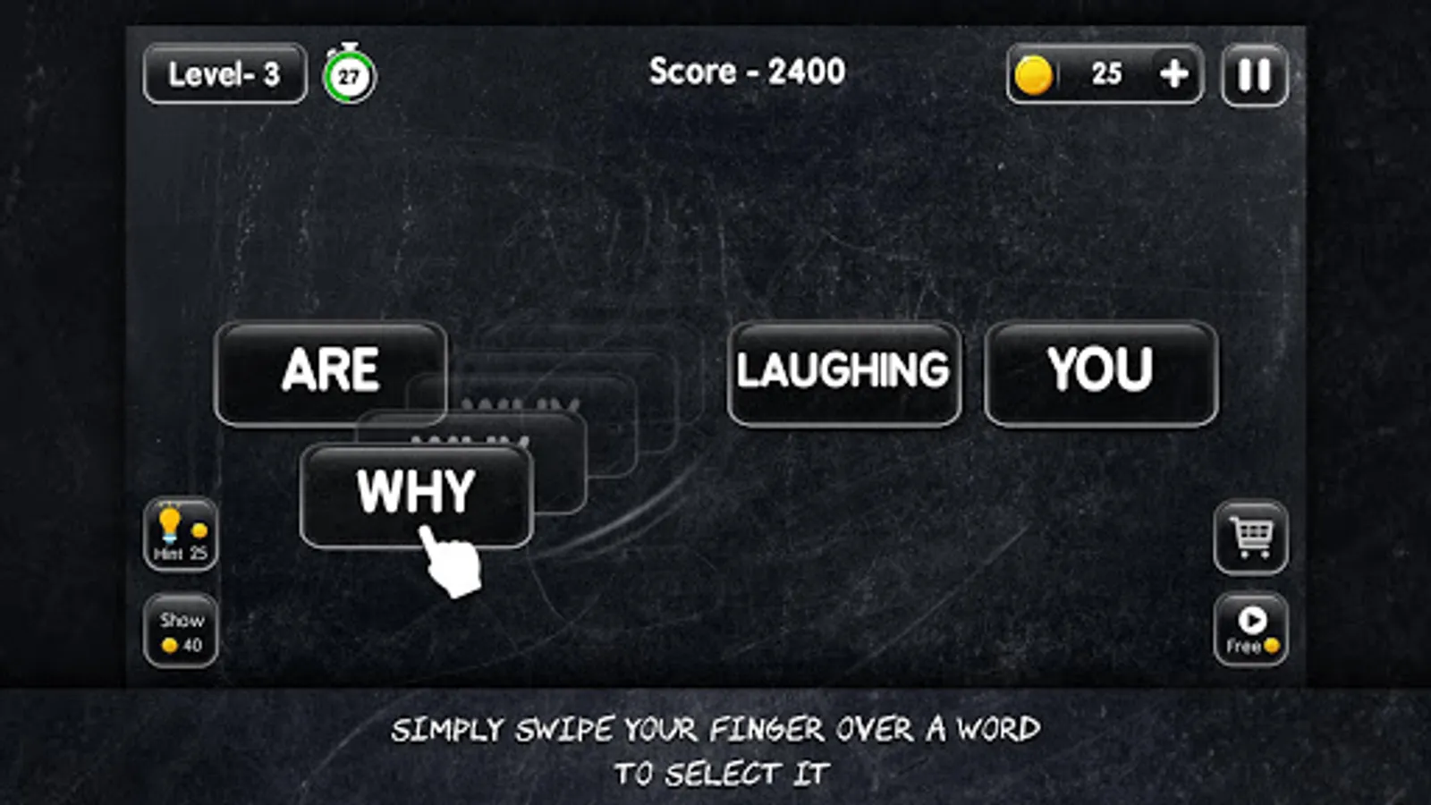 Word scramble challenge is an addictive word puzzle game or scramble word find game, where you need to arrange letters and words in order, to form a word and sentence respectively, within a given time. Scramble word find have multiple modes. Words unscramble is a free game.