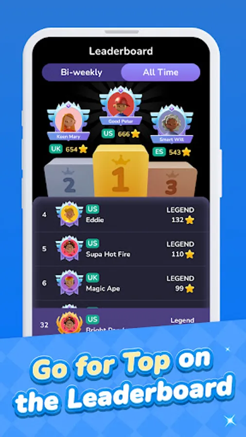 Are you looking for a way to build your vocabulary? Our battle mode is the answer! There is no better way to train your brain than compete with smart word game players in Wordle Battle With Friends. Think you're the best at word games of all your friends? Prove it by ranking high on the All-time and Bi-weekly leaderboard. Looking for new friends with whom to play puzzle games? You can practice your crossword skills with our random opponent matchmaking.