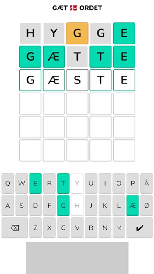 You have 6 attempts to guess a Danish word of 5, 6 or 7 letters. After each guess, letters you have guessed right and wrong are highlighted. Green letters are placed correctly, yellow letters are placed incorrectly, and gray letters are not found in the word. Good luck!