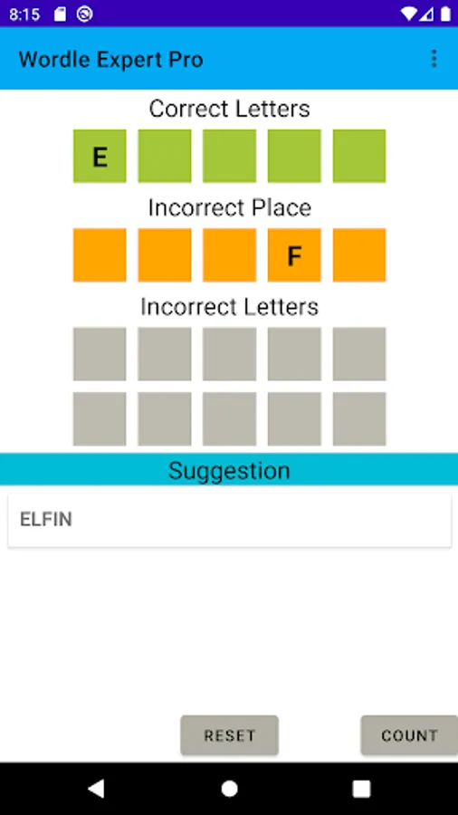 5) Count Button : It will show the number of words available with the current Filled spots. This button is available for Pro version only.