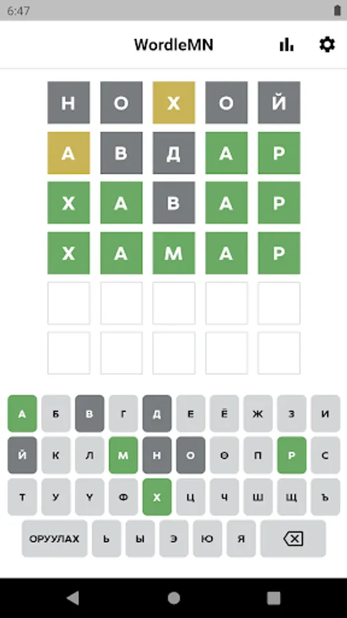 5 үсэгтэй үгийг 6 болон түүнээс доош боломжоор таагаарай.