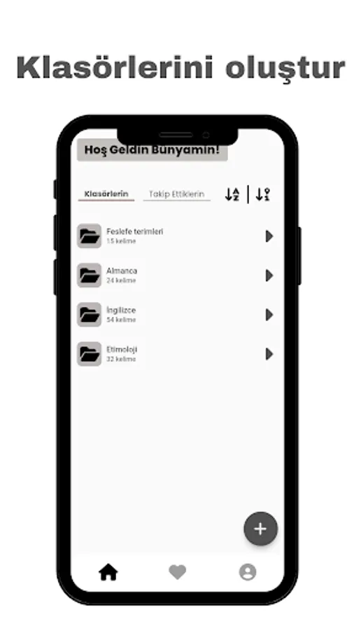 You can organize your words neatly thanks to customizable folders. You can add as many folders as you want, and under each folder you can add words suitable for your interests, the language you learn or any subject.