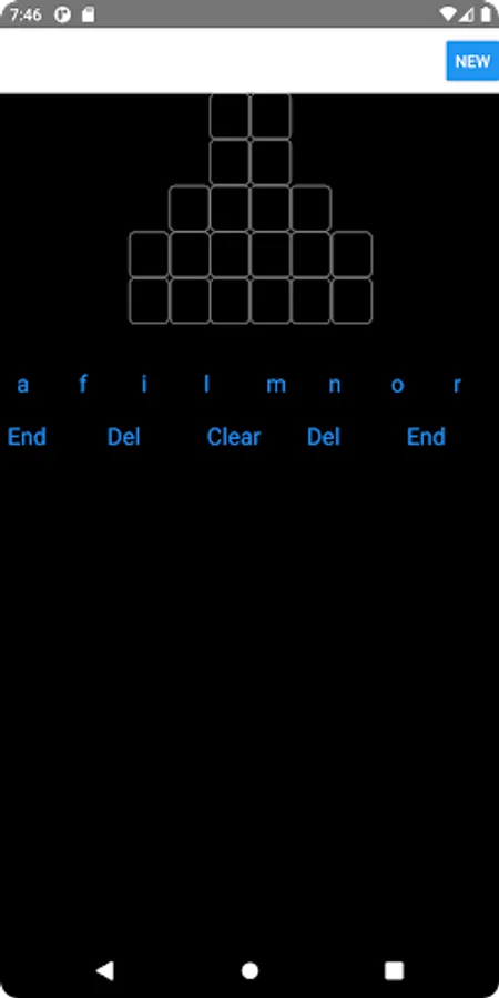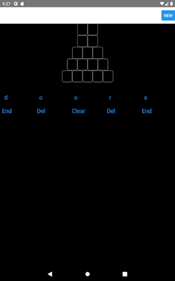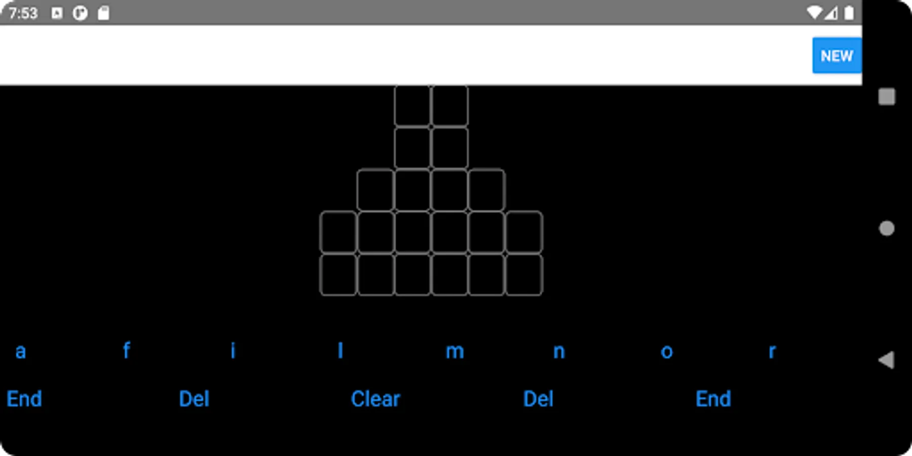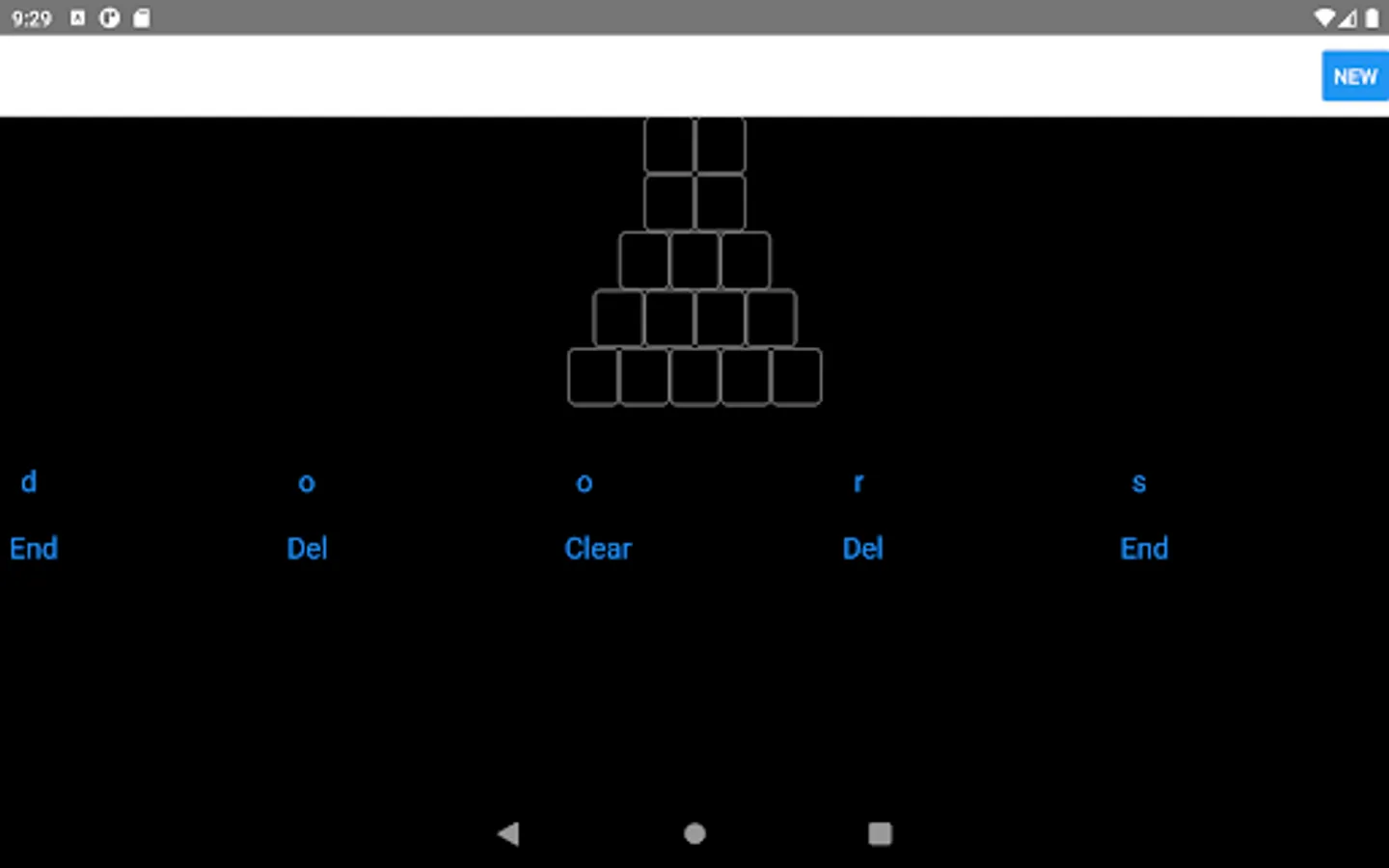 2. Input a word by tapping given letters. Use Del to delete an input, Clear to clear current input