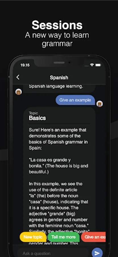 If you don't know how to use the language, Wordoss offers interactive grammar learning, where you decide what to focus on! You choose a topic, and then the AI tells you what you need to know. You can always change the topic, or you can dig deeper, ask questions or ask for examples. This grammar learning tool is a new and innovative way of learning grammar!