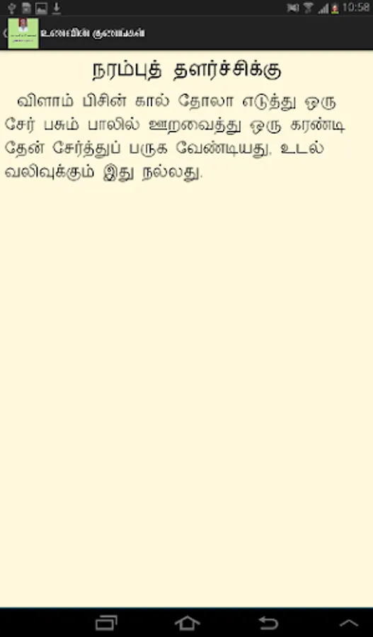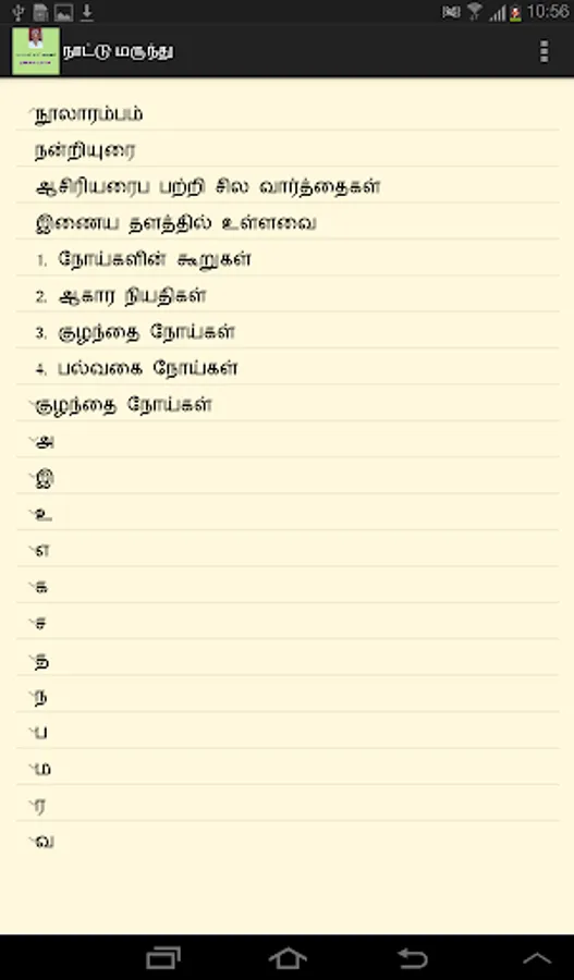 The book covers several remedies for the infants and grownups with directions for finding the pulse, quality and symptoms of various 'நாடி'. A valuable book for everyone.