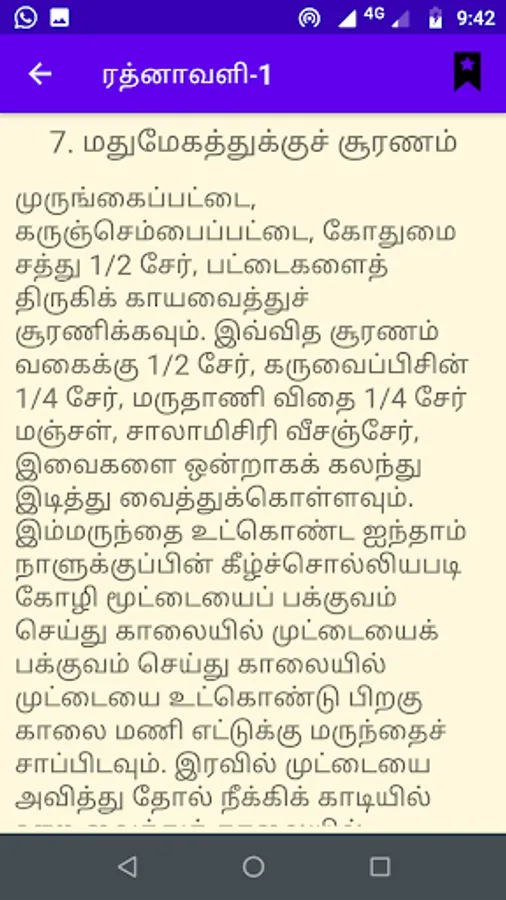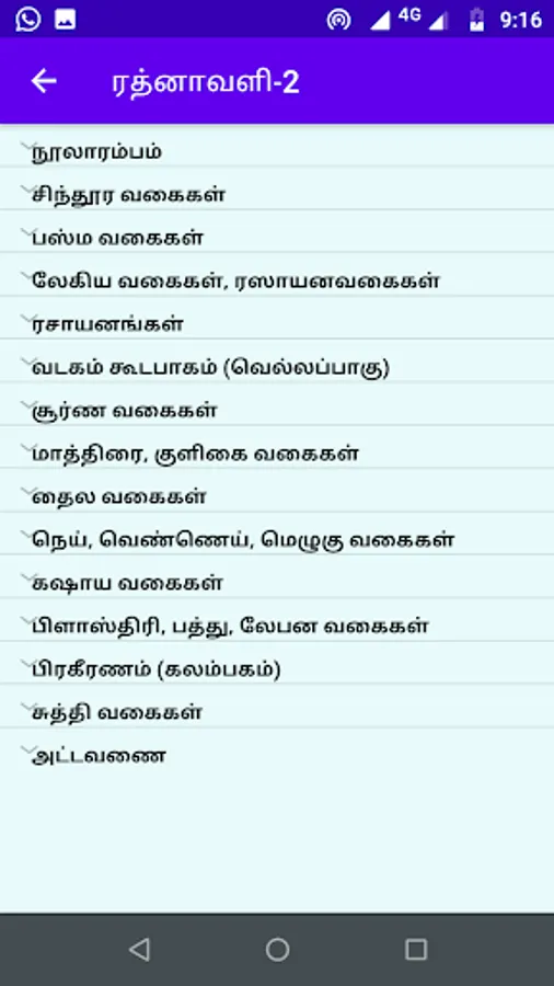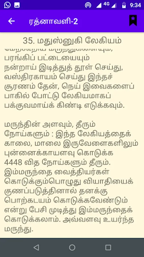 There are over 1000 treatments available. Although mostly for doctors, it can be used by lay people and experienced Siddha, Ayurvedic and Unani doctors. The same drug is said for 4448 diseases.