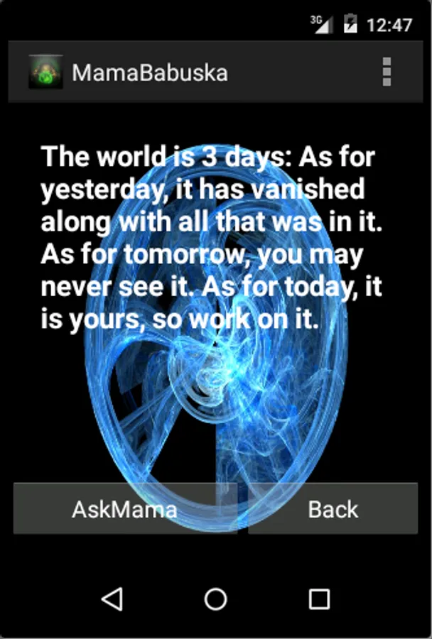 Every day enter Mama 3 times, and ask Mama. The quotes, sayings and the wisdom that will appear before your eyes – and which will never be the same - will help you find the needed strength and inspiration to solve the various issues of your life.