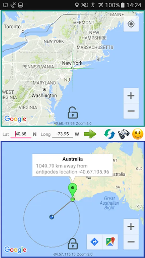 This app lets you pan around the Earth and immediately see the Antipodes (opposite point) on the same screen.