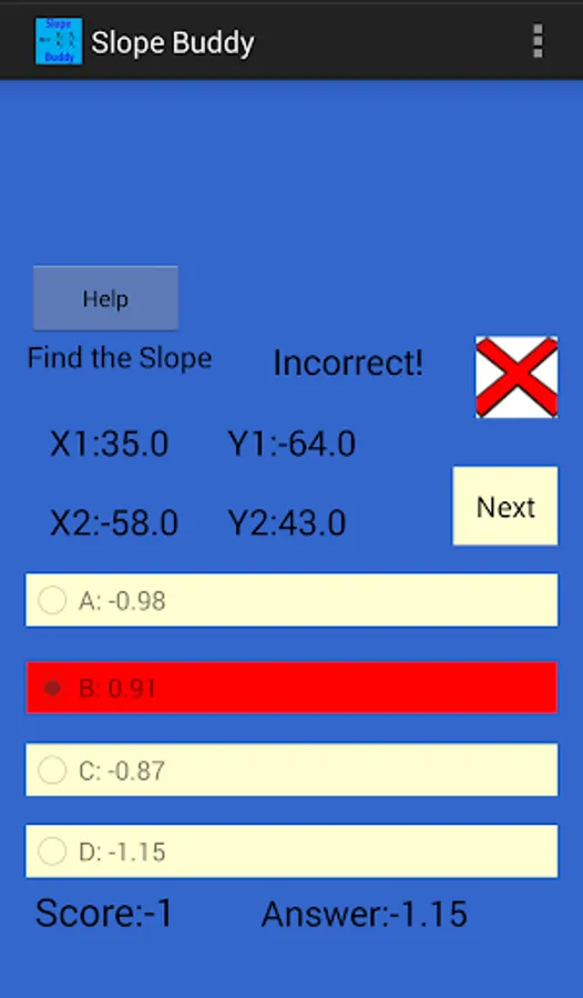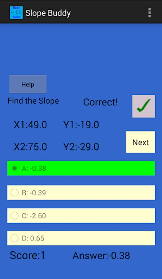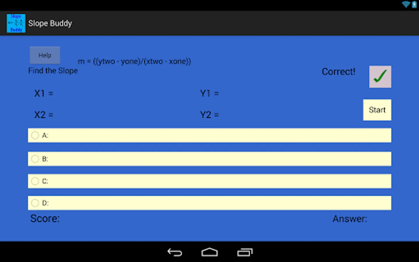 Slope Buddy is an app intended to help YOU find the slope of a line and retain the skill of finding a slope.