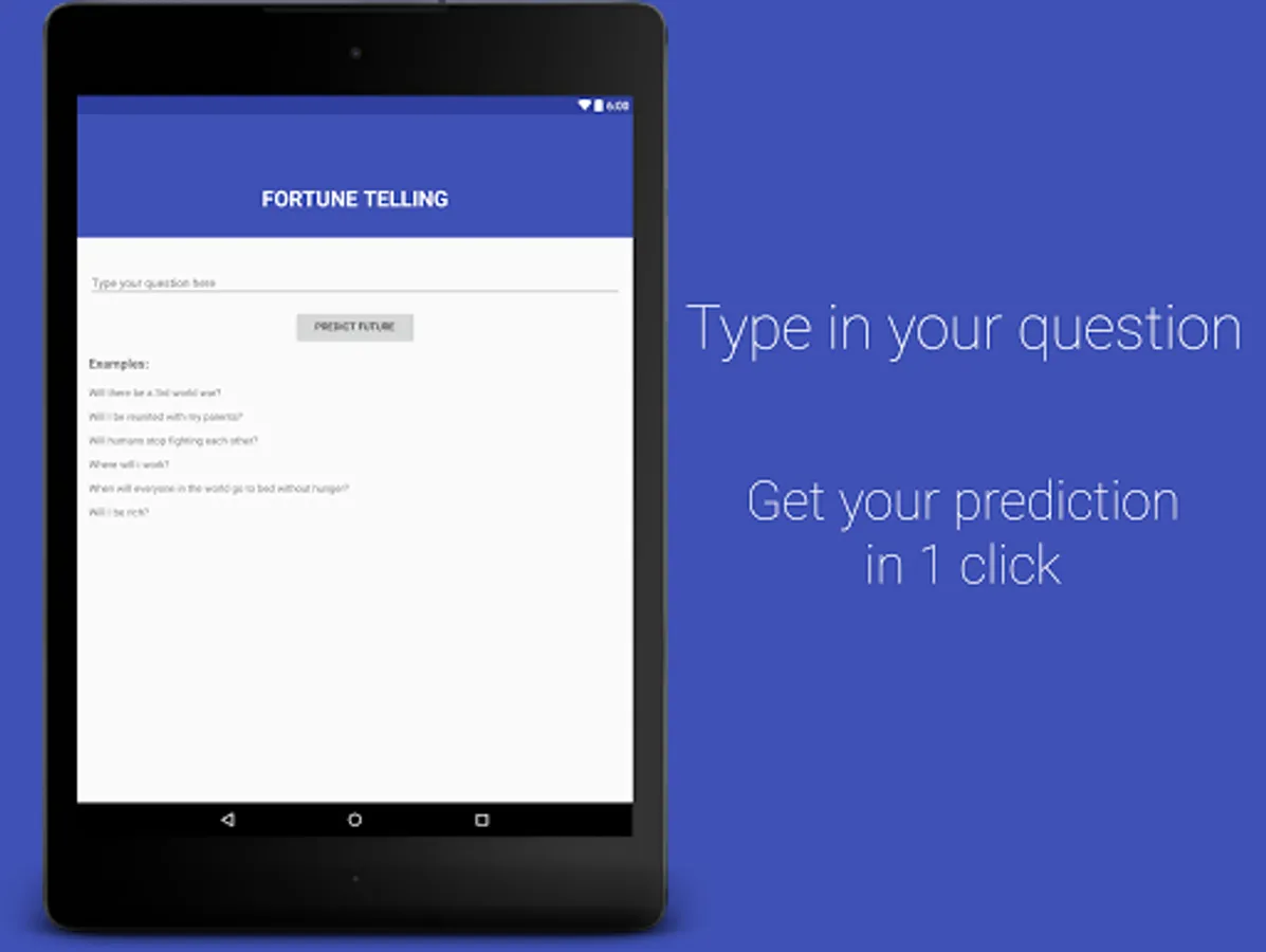 Everyone is so excited about their future and they need know what will happen. This app has been designed to serve such a purpose. Just type in what you need to know. Example: Will there be a 3rd world war? and get it predicted.
