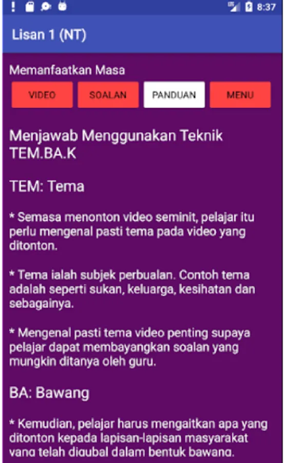 This apps contains oral resources (videos, questions, guides) for topics covered in Secondary 1 Jauhari textbook (NT).