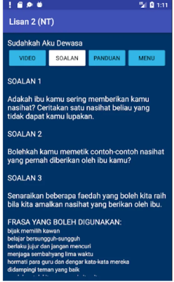 This apps contains oral resources (videos, questions, guides) for topics covered in Secondary 2 Jauhari textbook (NT).