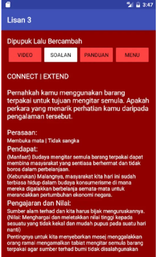 This apps contains oral resources (videos, questions, guides) for topics covered in Secondary 3 Jauhari textbook.