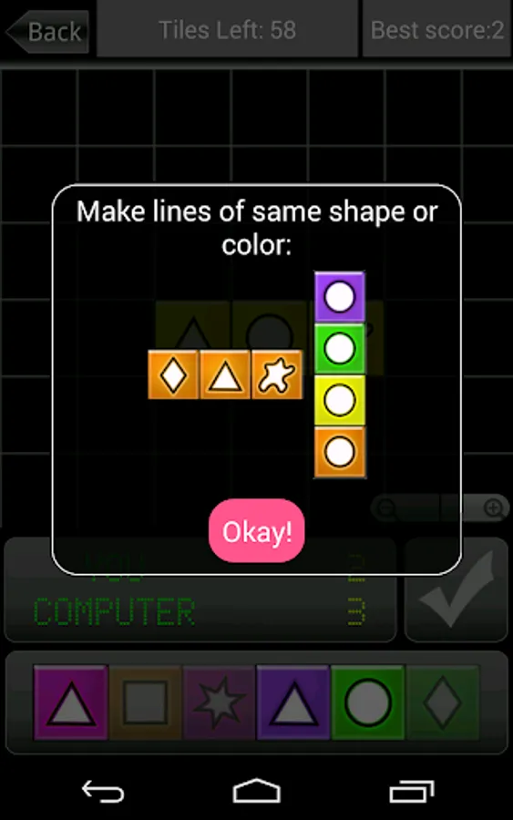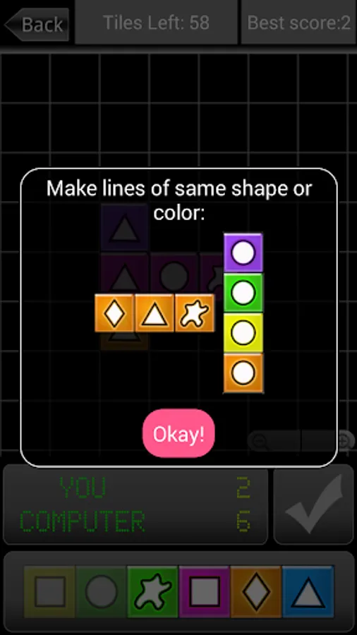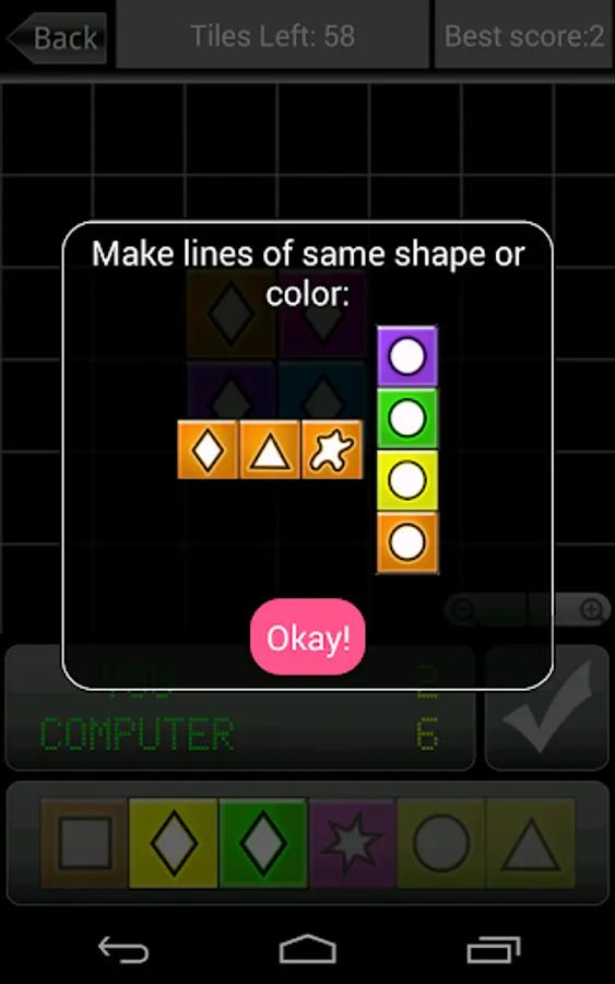 The rules are so easy they can be quickly learnt by try and error: there are a number of tiles. Some share color and some share shape. Create lines of tiles which share only one of the two to score!
