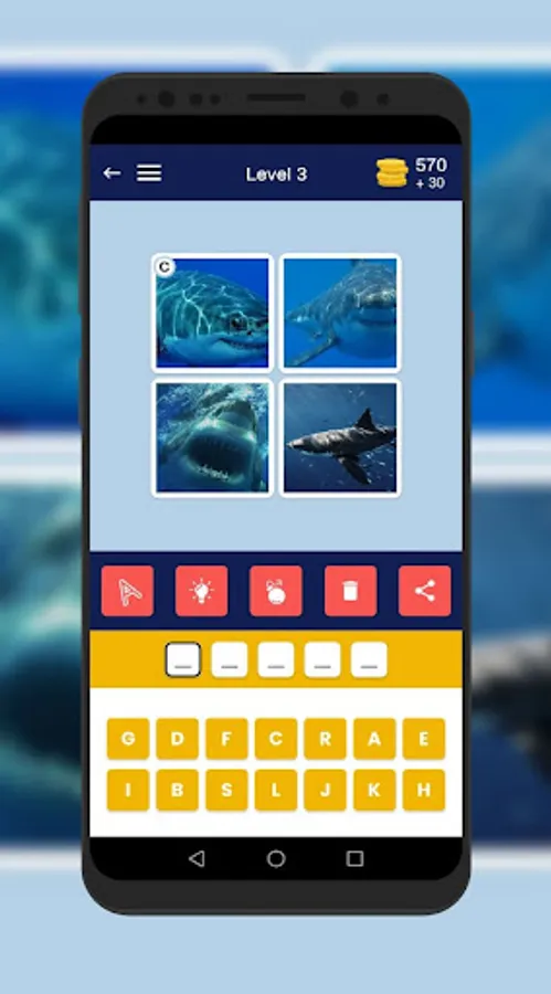 If the word turned out to be difficult and it is impossible to guess, there are several hints that can be used for game coins, the first hint is to remove several letters, the second hint is to reveal any of the letters of this word and the third hint is to show the word completely for a few seconds.