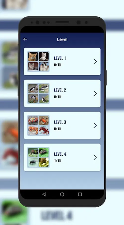 After completing the level, you can proceed to the next more difficult level. Each level contains 10 words of puzzles.