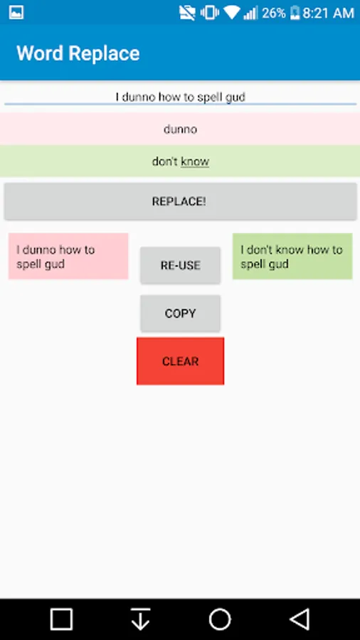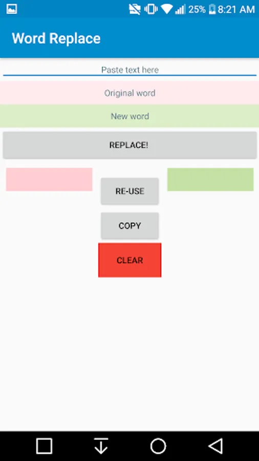 Paste your text into the app, replace however many words you need, and copy the final result to your clipboard!