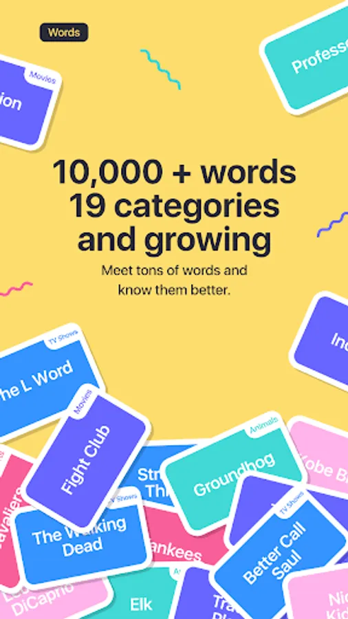 2. Massive database with a wide range of interesting categories. 10,000 + words, 19 categories, and growing.