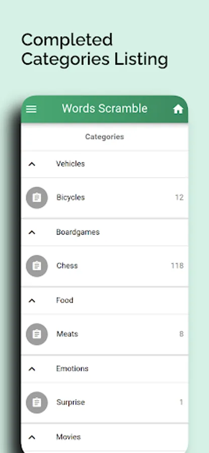 If standard scrambled words aren't enough of a challenge, amp up the difficulty by taking on different categories that you know less about. Race against the clock to unravel as many words as possible or focus your skills by solving puzzles within set categories. Track your performance in the completed section page.