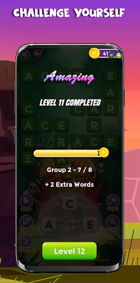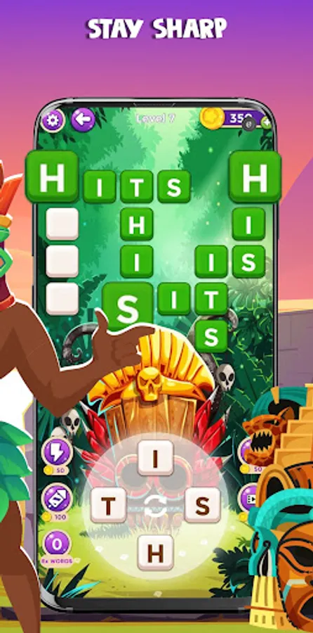 - Find as many words as possible to unlock levels and earn extra bonus coins