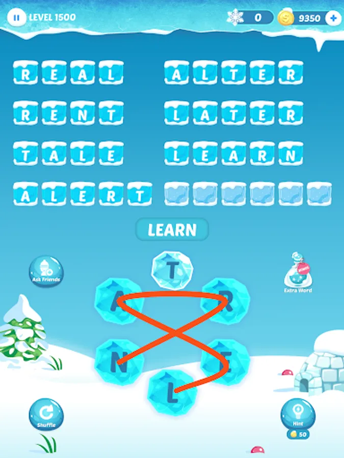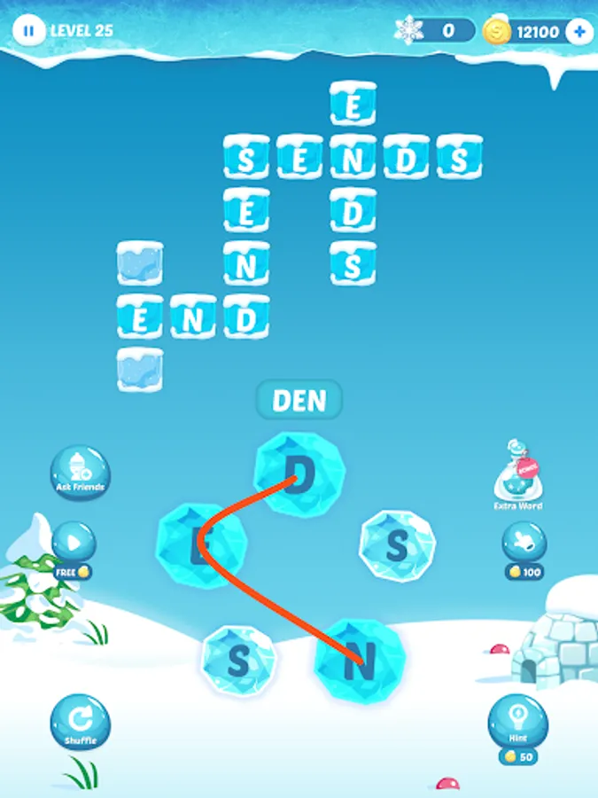 You get more than just word in Word Frozen - relaxing and pleasant background music, HD graphics with eye-catching elements, elegant colors that match the theme, visual animation... all to make it a work of art. As you play along, you will be moving on our level map, just like you are taking an adventure on an icy fairy land.