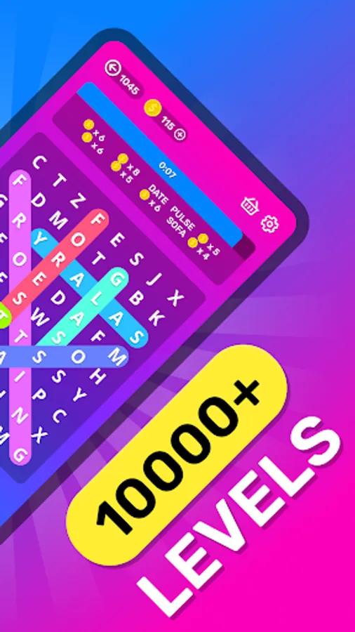 - The number of hidden words and the difficulty of levels are ever-increasing as you progress through the game.