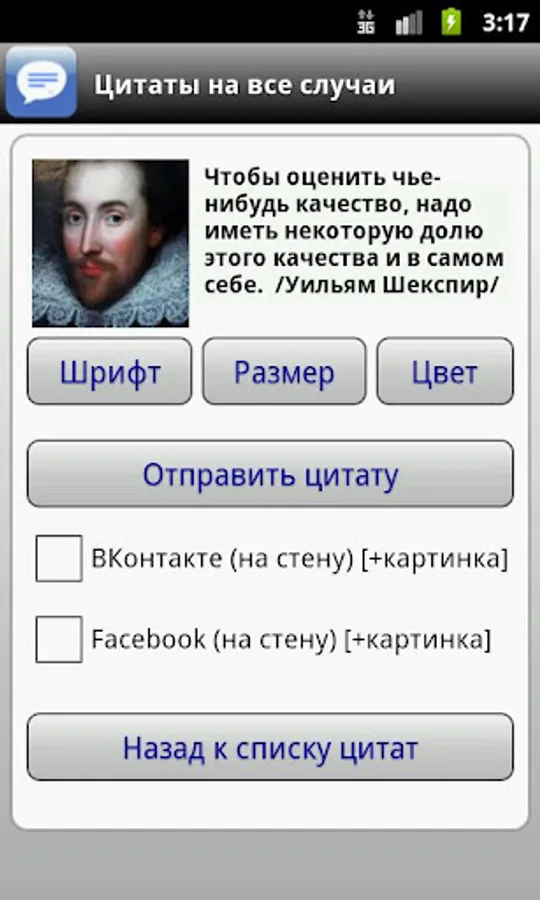 The ability to publish a photo of the author quotes (for VKontakte, My World and Facebook)!!!