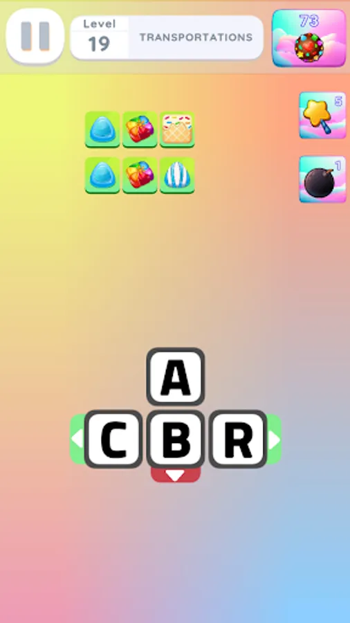In Word It: Word Slide Puzzle, your objective is to rearrange the letters on the grid, by sliding them both horizontally or vertically, to form words related to the given category title. As you slide letters and uncover the hidden words, the candies above them will delightfully float to the top right corner, rewarding you with precious points.