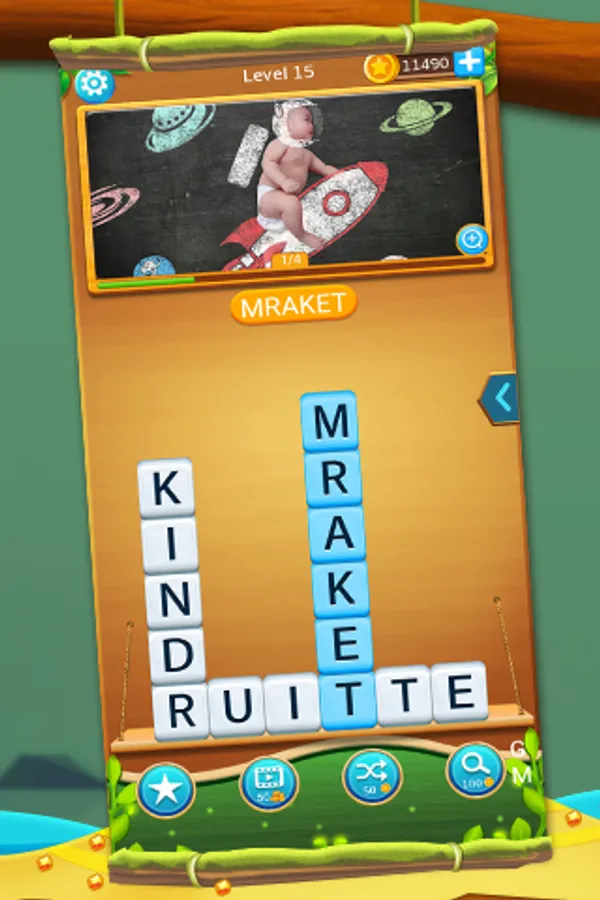 - Tap the "Search", "Hint" or "Shuffle" buttons if you get stuck