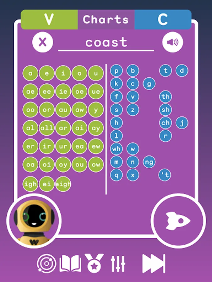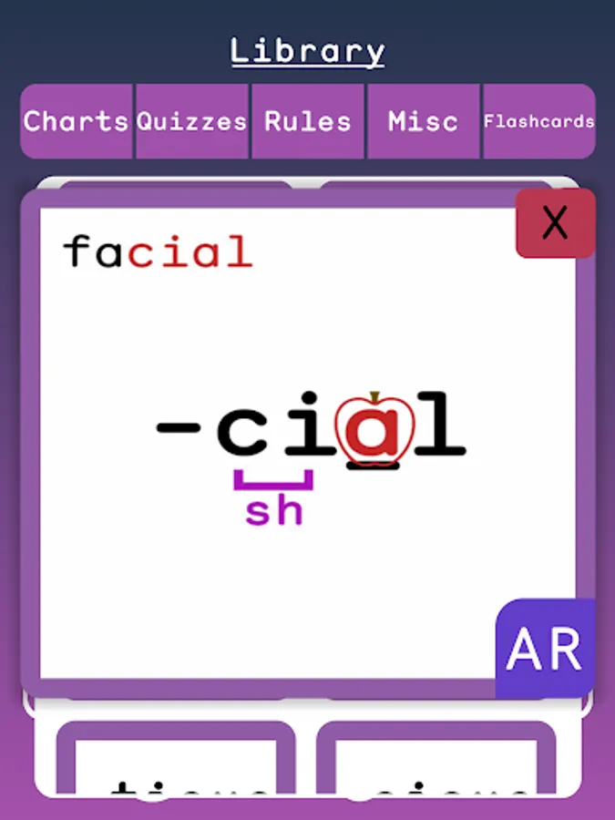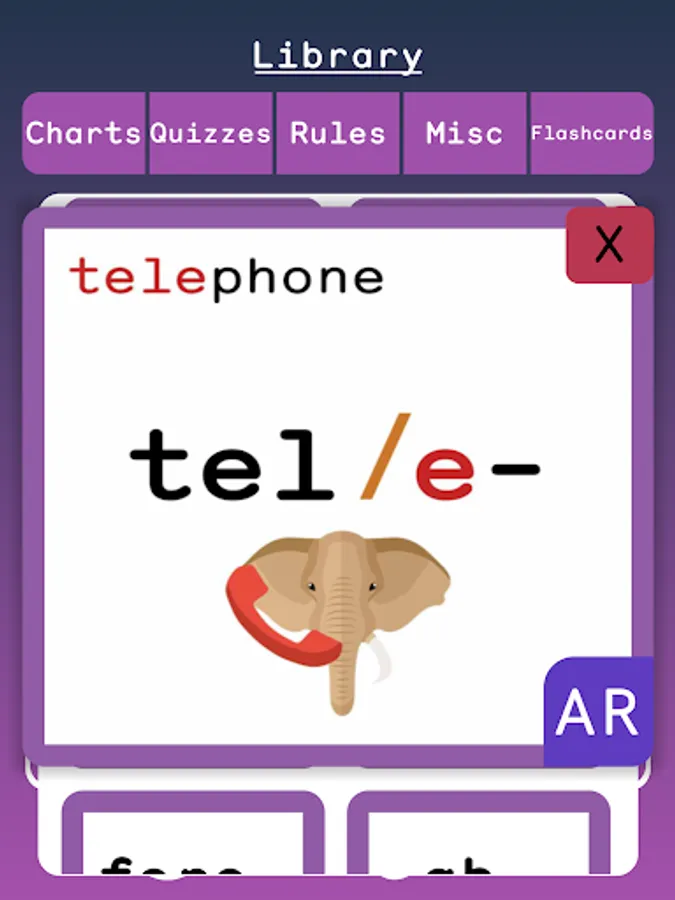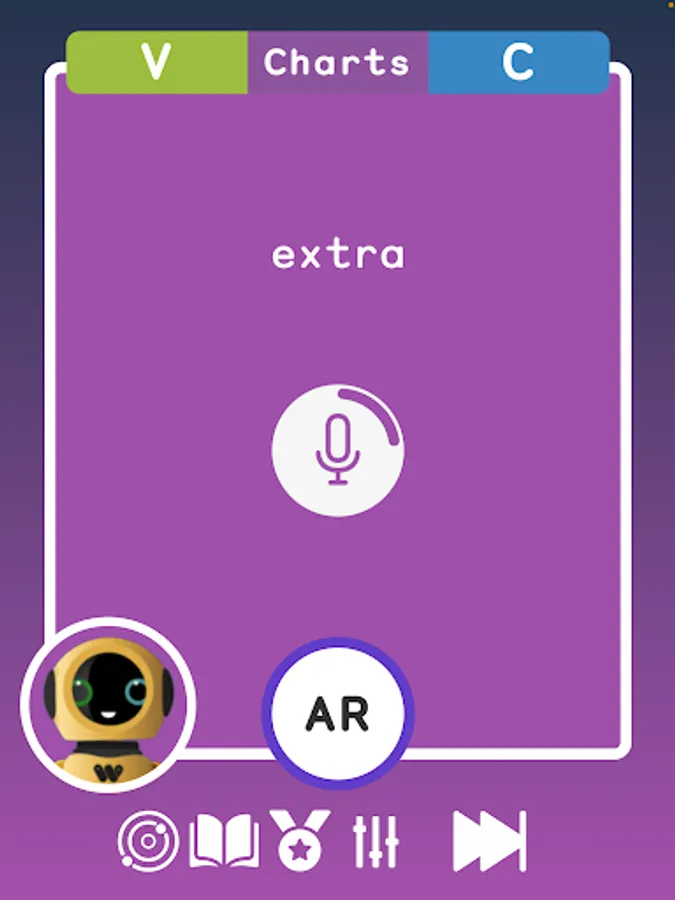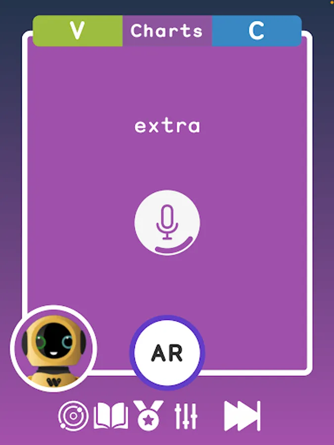 1. Augmented Reality (AR) phoneme (speech sound) icons, with voiceovers to facilitate memory and association. These are supported by detailed vowel and consonant interactive charts that incorporate short videos and AR features.