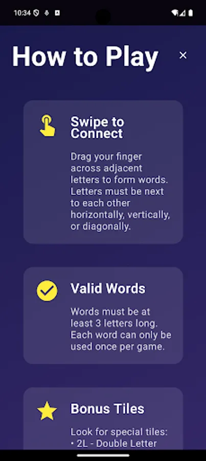 Immerse yourself in a grid of letters where countless words are waiting to be discovered. Simply swipe your finger across adjacent letters—up, down, diagonally, and backwards—to weave them into words.
