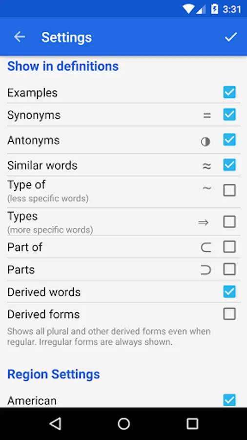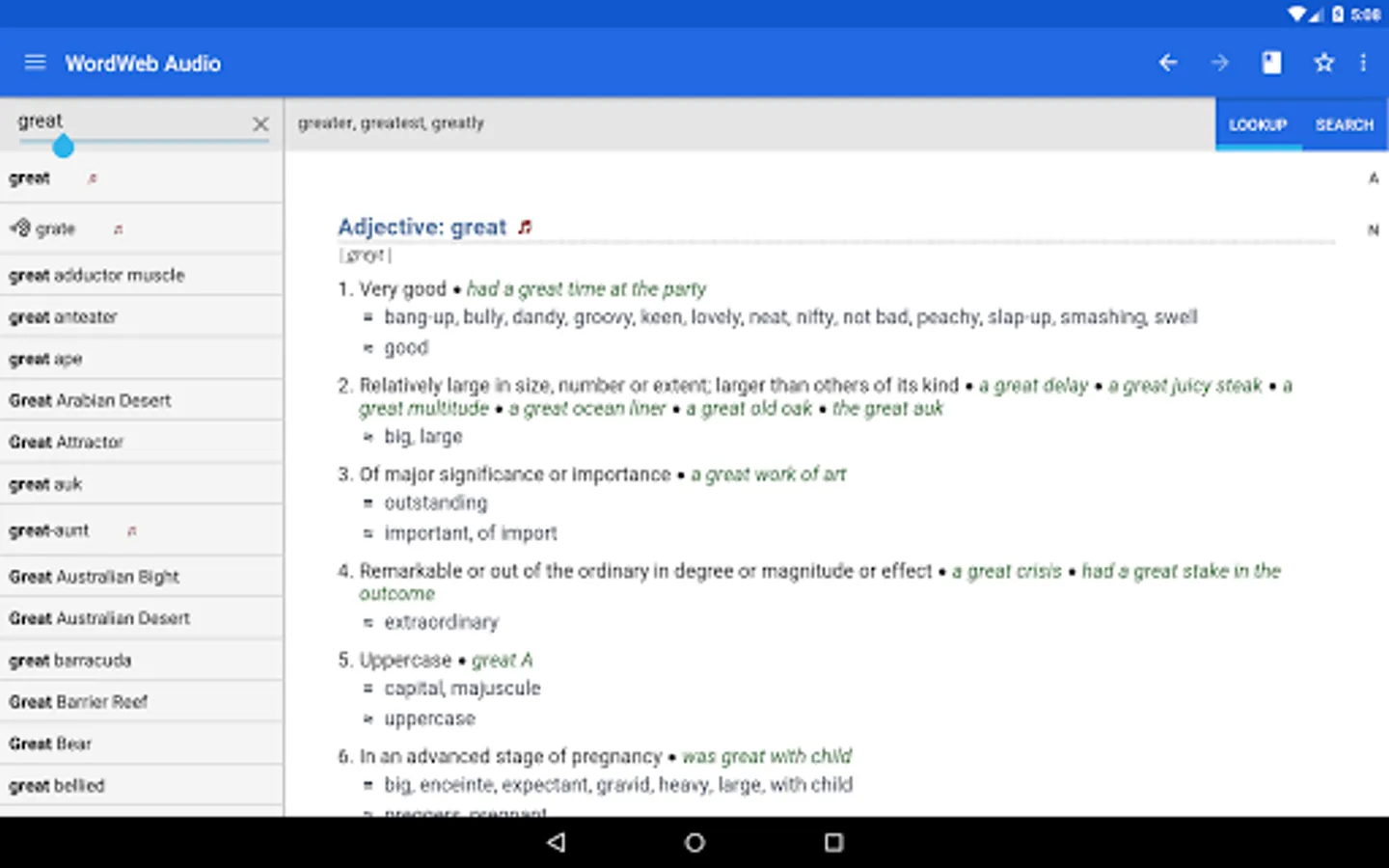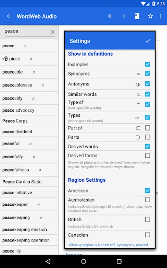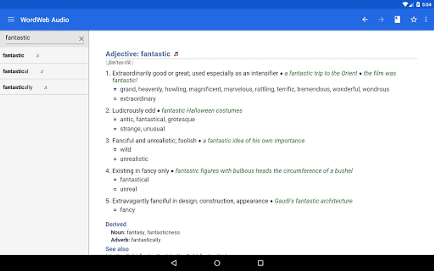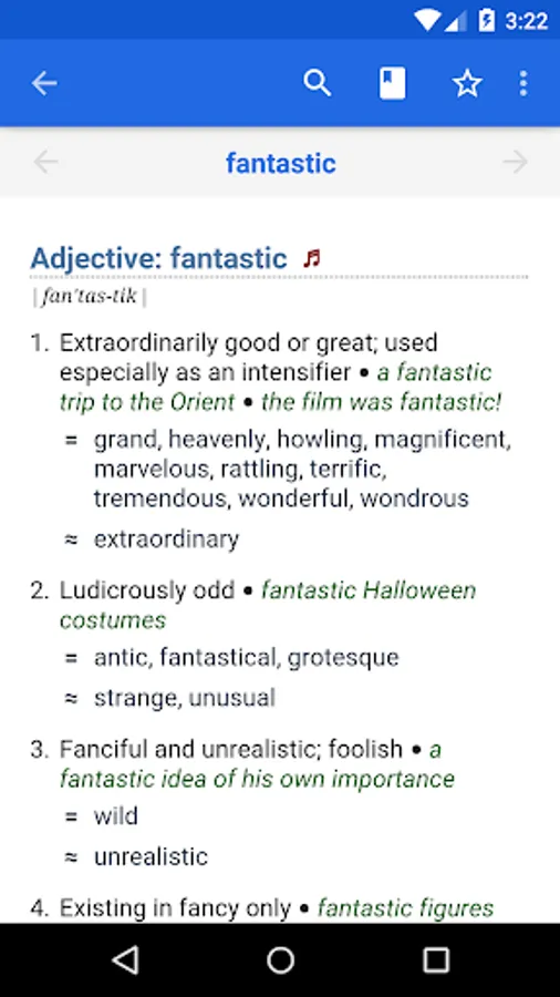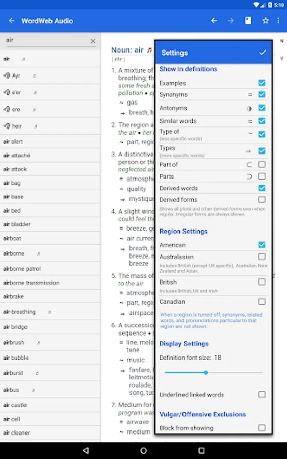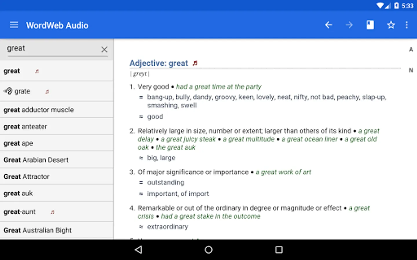 The offline audio English dictionary and thesaurus with synonyms, related words, and professionally recorded pronunciations.