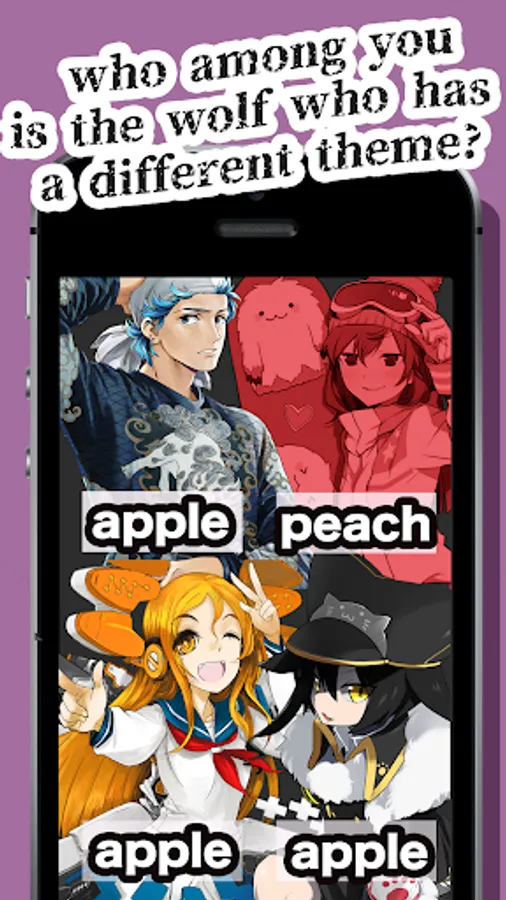 WordWolf is a strategy party game you can play any time, anywhere, with anyone. Check your attributed theme and try to find who has a different card from the other players. Battle friends both online and offline.