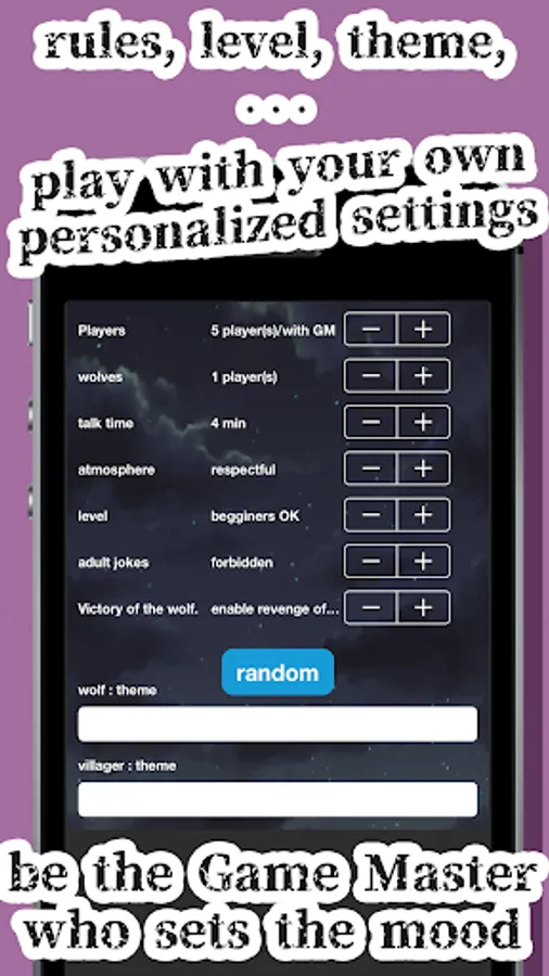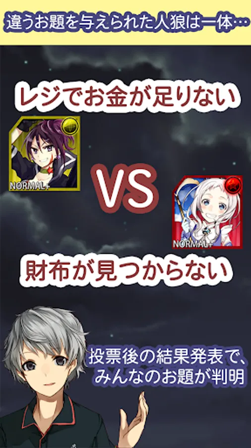 WordWolf is a strategy party game similar to the werewolf game. Each player is attributed a role in the form of a word or a simple sentence. Only one player, the wolf, is given a different word or phrase from the other players. Your goal as a villager is to unmask the wolf within the allocated time.