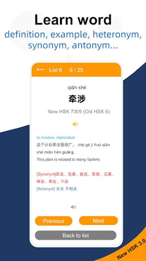 * 11,500+ Chinese words across HSK level 1~6~789. Old HSK words are also included.