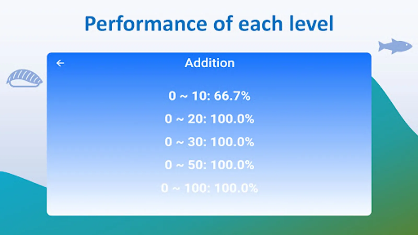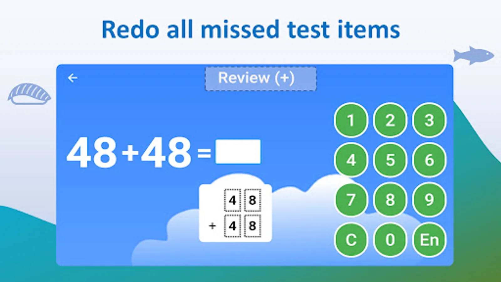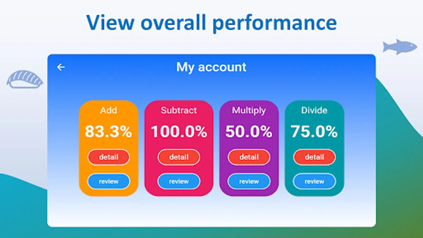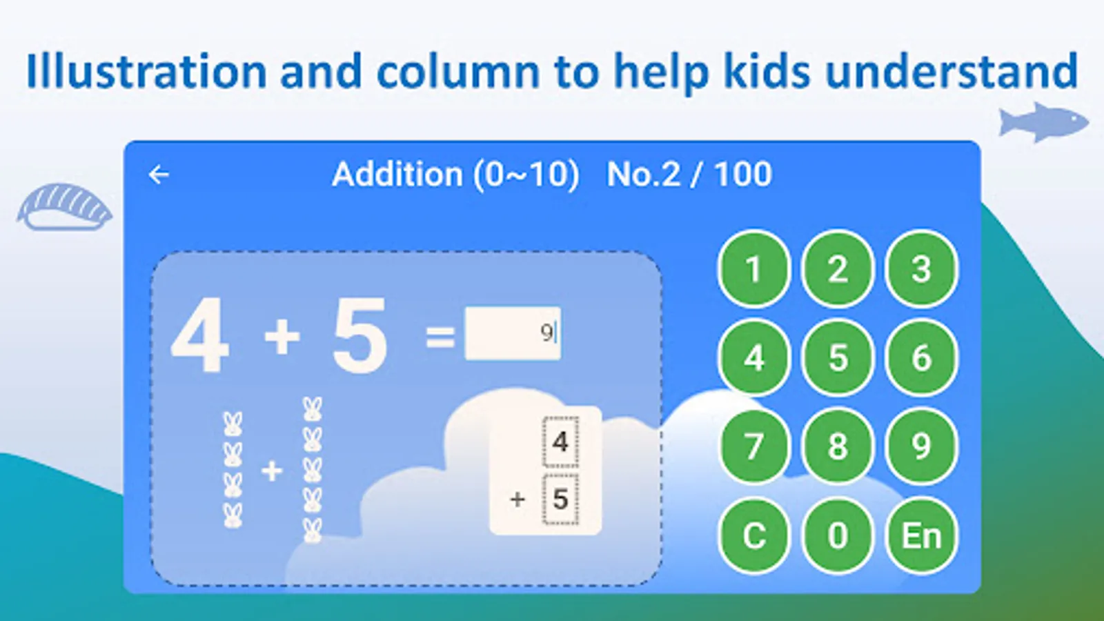 It covers addition (➕), subtraction (➖), multiplication (✖️) and division (➗). Each has several levels starting from easy to hard. Simple illustration helps your kids understand the logic of math. Since we don’t want to add burden to your kids, so each math question is unique.