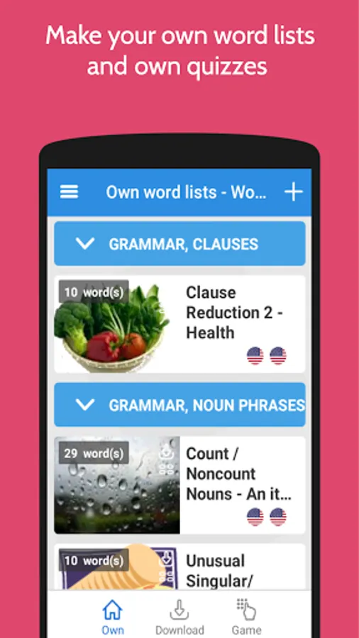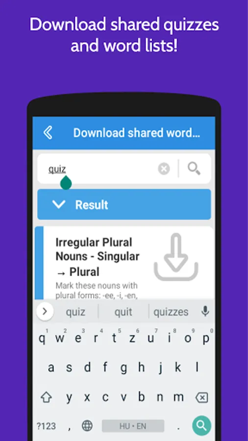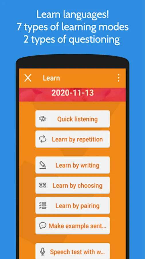 - use quizzes for any subject; not only quizzes for language learning, but also 7 types of learning modes, 2 types of questioning modes too