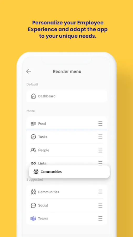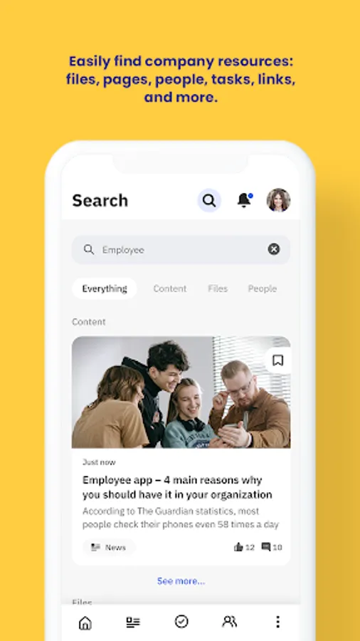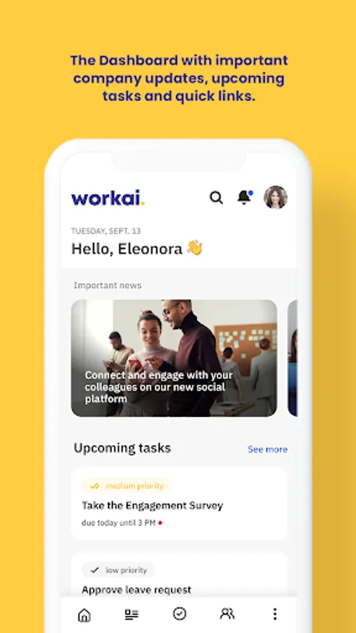 It's a one-stop app for employees to get company information, news, and events. Connect with co-workers through the internal social network, provide feedback, search for people and knowledge, develop skills, plan work and get things done.
