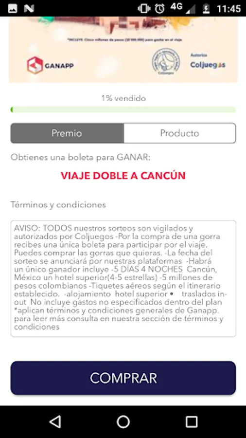 GANAPP is an electronic commerce platform, in which through the purchase of an item, our customers can participate in raffles of great prizes.