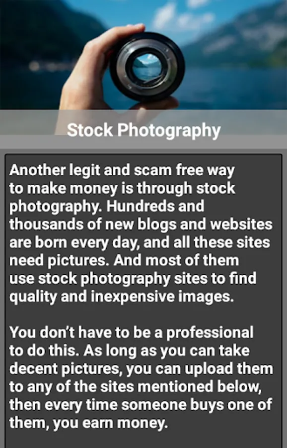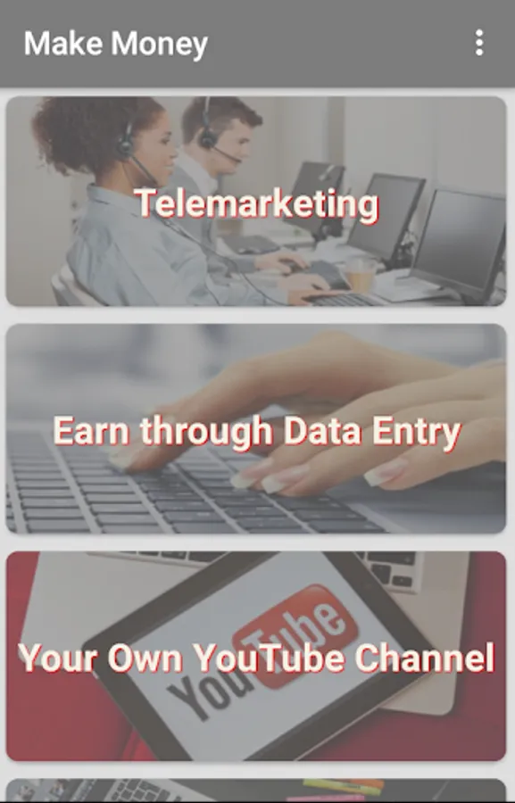 In this free make money app you will have all the tips from a experts one who is being years of searching and filtering this online market... you have to start but work hard and be patient for what you are learning and what you are going to do.