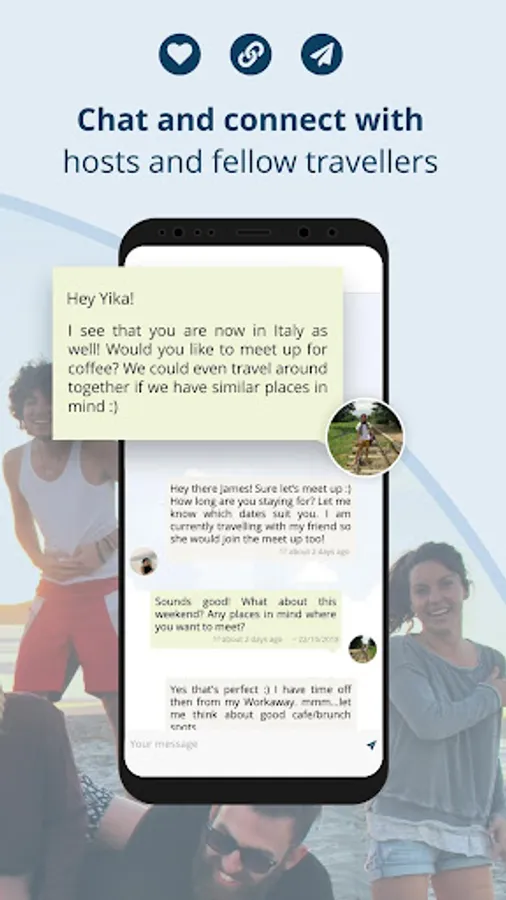* Find a travel buddy and connect your accounts to plan your next Workaway adventure, visit hosts and apply together