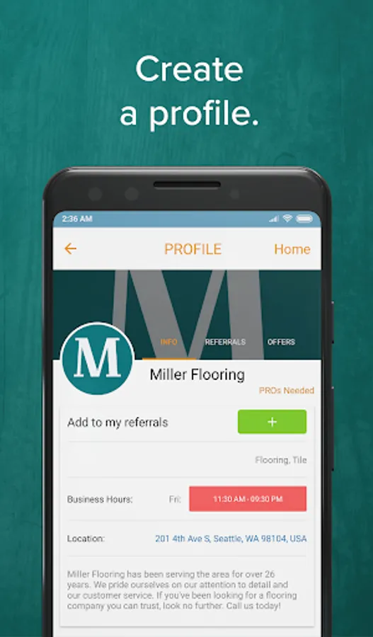 • If you’re a CONTRACTOR: expand your contact database by discovering new connections in your area and share your referrals with others.