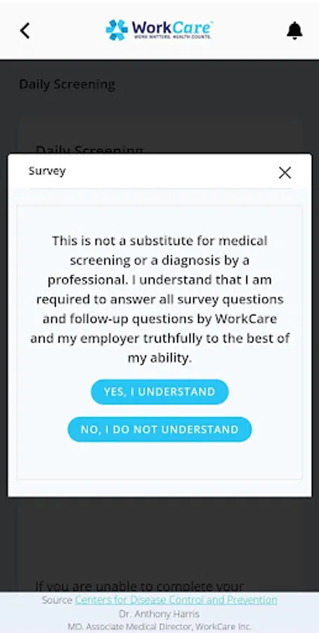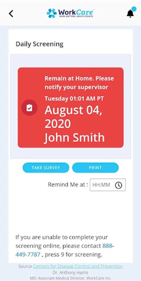 WorkCare provides Occupational Health Services. The WorkCare WorkMatters app supports various health screening functions and risk stratification for our clients to use with their employees. The app guides employees through a series of questions to either clear the individual to go to work or stay home. If an individual is directed to stay home, WorkCare clinicians (may include nurse and physician counselling) contact the employee for further screening as required by their employer. Please make sure update the app to the latest version available in order to avoid any issues using the app.