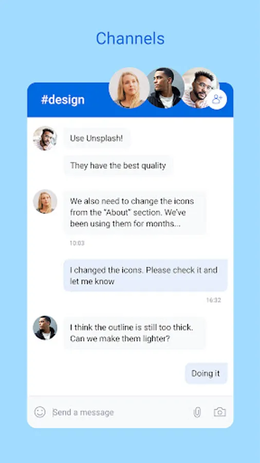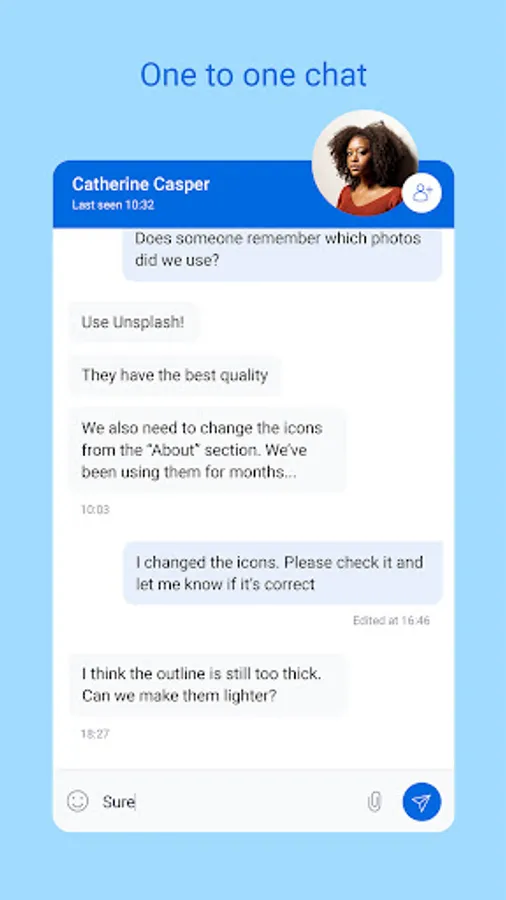 A secure professional channel for all your internal messaging needs. Seamlessly in sync with the Workdeck web application.