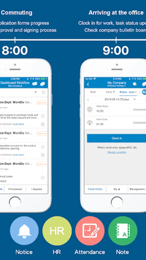 Leave: Apply for leave is easy while managers can coordinate resources better and in advance.