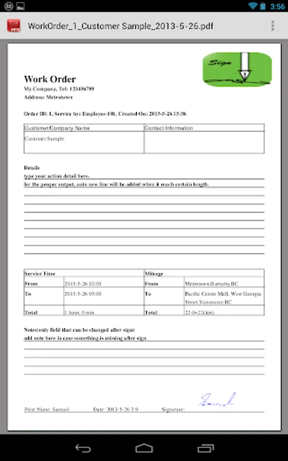 this is a work and service record management tool. it generate and sign your work order, save time to mark down service time and planning trip.